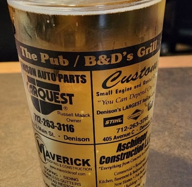 Our glasses get noticed whether sitting on the bar, on a table or in a customer's hands due to the uniqueness of them. This is a great way to get your business out into the local community whether you are just starting or are an established business. For pennies a day, it's some of the cheapest, but effective advertising method today.